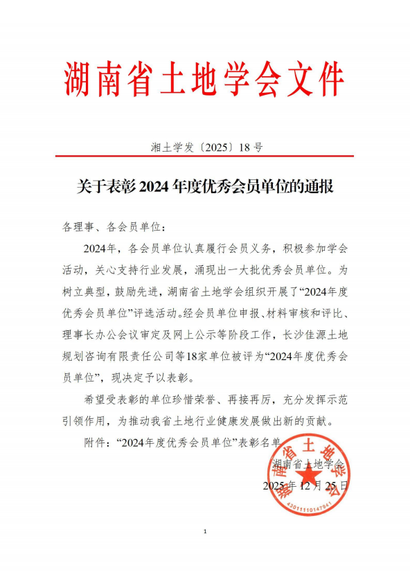 > 关于开展湖南省土地学会2024年度优秀会员单位评选...